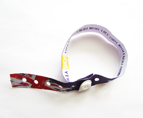 woven wristband with one time use PVC button