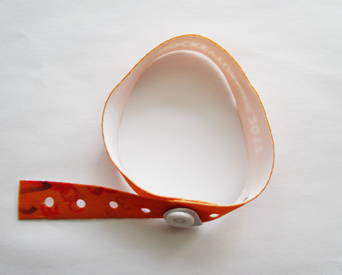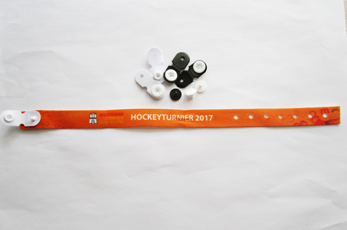 polyester wristband with one time use PVC button